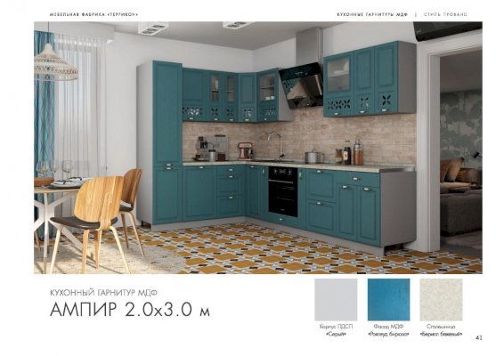 Модульный кухонный гарнитур Ампир роялвуд бирюза (Террикон)