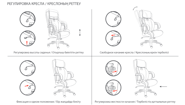 Тип механизма кресла: "топ-ган" качание с регулировкой под вес и фиксацией в 1 положении