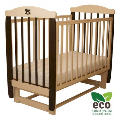 Кроватка "Соня 04" имеет механизм качания поперечный маятник. Механизм качания фиксируется. Возможен вариант с ящиком.