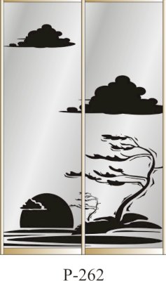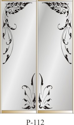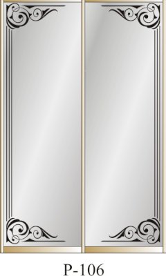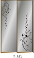 корпус - Дуб Сонома, фасады - зеркало с пескоструйным рисунком, рамка двери и треки - Серебро матовое.