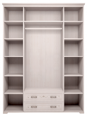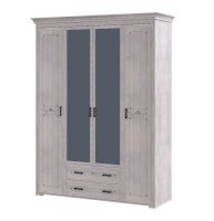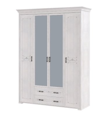 Вместительный 4-х дверный шкаф из коллекции "Афродита" позволит разместить весь гардероб. Благодаря продуманному и функциональному наполнению шкафа Вы сможете грамотно организовать хранение в спальной комнате. Основная секция имеет длинную металлическую штангу для платьев, рубашек и другой одежды на плечиках. Две боковые секции имеют в общей сложности 12 глубоких полок для хранения и позволяют разместить не только оставшуюся одежду, а также постельное белье и другие спальные принадлежности. В нижней секции находятся два выдвижных ящика, которые послужат дополнительным местом для хранения Ваших вещей. Полезным дополнением являются зеркала на центральных дверцах — они визуально расширят пространство комнаты. Изюминкой в оформлении станут состаренные фигурные ручки на дверцах и утонченный дизайн фасадов. Для более изящного облика шкаф можно укомплектовать карнизами.