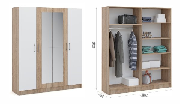 Четырехдверный шкаф зеркалом Алена (Империал)