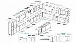 Глубина нижних шкафов без учета столешницы: 444 мм, с учетом столешницы 600 мм