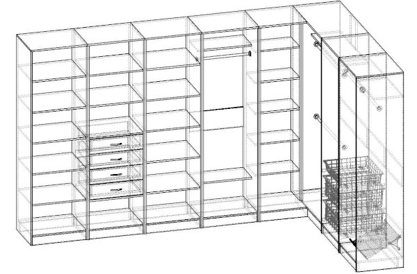 Вы можете выбрать любой цвет корпуса из представленных ниже вариантов цветов ЛДСП.Также вы можете собрать cами свою гардеробную Alex