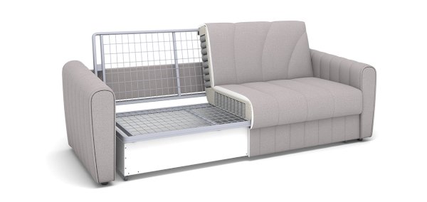 Диван Эльзас - уникальная разработка конструкторов Rivalli. Механизм трансформации клик-кляк простой и надежный позволяет не отодвигать диван от стены при трансформации.