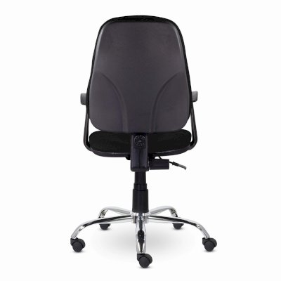 Металлическое хромированное пятилучие увеличивает срок службы и придает креслу интеллигентный внешний вид.