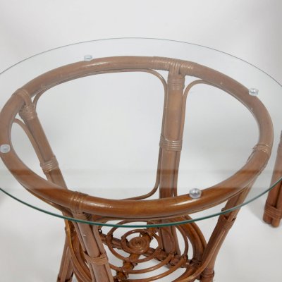 Материал: каркас - натуральный ротанг (высший сорт), столешница - закаленное стекло