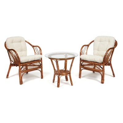 В комплекте: стол со стеклом + 2 кресла + подушки