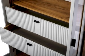 • Между стационарными перегородками два ящика друг под другом на направляющих нижнего крепления не полного выдвижения с доводчиком.