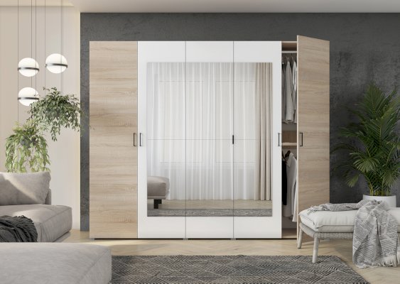 Шкаф 5-створчатый 2000 Комбинированный (2 створки с цветом фасада Венге, Белый или Сонома/3 створки Бетон или Крафт золото)