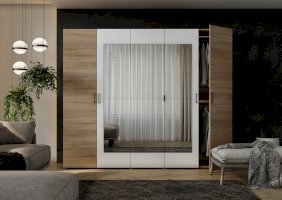 Шкаф 5-створчатый 2500 Комбинированный (3 створки с цветом фасада Венге, Белый или Сонома/2 створки Бетон или Крафт золото)