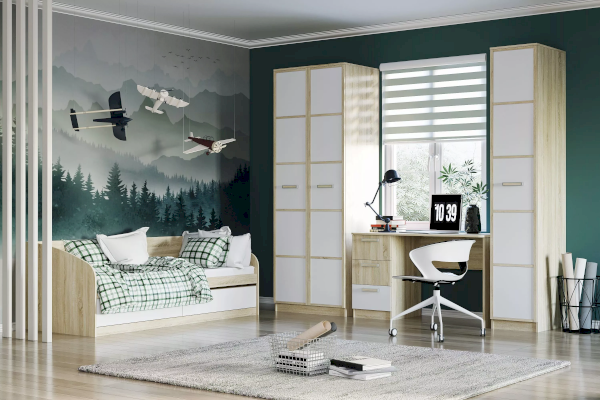 Шкаф для белья ФАНК не займет много места в детской комнате. Компактная, но очень вместительная модель шкафа с пятью полками, позволит разместить вещи и игрушки. Классические глухие фасады надежно защитят содержимое шкафа от влаги и пыли.