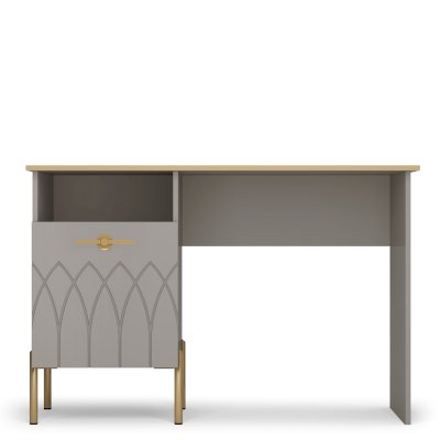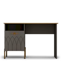 Благодаря продуманной конструкции модуль удобен для учебы или работы, столешница шириной 1220 мм позволит разместить все необходимое, включая компьютер. Зона для хранения письменных принадлежностей оформлена в виде открытой ниши и закрытого отделения с дверью.
