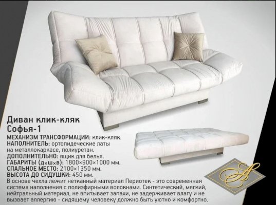 Клик Кляк Софья-1 (Асмана) - за 51 682 руб. в Мариуполе. Купите на сайте mariupol.onlinemarketmebeli.ru или по телефону 8(800)505-30-63 уже сегодня! Уточнить наличие, комплектацию, актуальную цену можно бесплатно у менеджера ежедневно. Закажите Клик Кляк Софья-1 (Асмана) до конца акции! Доступна покупка в кредит, рассрочку. Доставим со склада или на заказ.