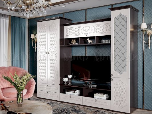 Гостиная из мдф "Престиж" - это идеальное решение для тех, кто ценит красоту, функциональность и элегантный интерьер. Гармоничное цветовое решение, красивая отделка фасадов для гостиной и аристократизм мебели подчеркнут высокий социальный статус и безупречный вкус хозяев. С гостиной "Престиж" приятно принимать гостей и проводить время с семьей. Гостиная просто очаровывает своим роскошным видом и необыкновенной отделкой.