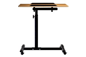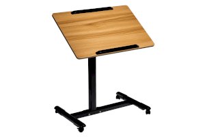 Столик оборудован поворотной столешницей из МДФ и металлическим основанием. Угол поворота столешницы составляет 180°, вплоть до вертикального положения. Высота подъема регулируется в диапазоне от 65 до 97 см. На столешнице имеются ограничители для ноутбука, планшета, предотвращающие падение гаджета.