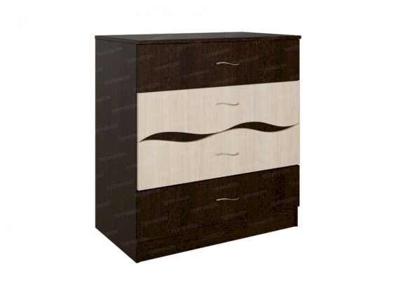 Дизайн спального гарнитура «Анапа» прост, но оригинален! Индивидуальность комплекта заключается в удачном сочетание темного и светлого оттенков, а также натуральной текстуре отделки. Изящество модели придают плавно изогнутые линии, украшающие изголовье кровати, фасады тумбочек и комода. Декоративные волны контрастных цветов и зеркало делают шкаф невероятно стильным и привлекательным.