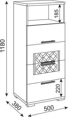 • Комод имеет 4 выдвижных ящика на шариковых направляющих полного выдвижения.