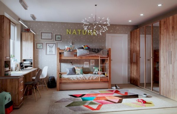 Отличным решением, позволяющим сэкономить место в небольшой квартире, будет двухъярусная кровать. В комплектации кровати - лестница с металлическими перекладинами диаметром 25 мм. Помимо спального места, на верхнем и нижнем ярусах кровати имеются дополнительные боковые ниши, которые помогут подростку держать под рукой необходимые перед сном вещи.
