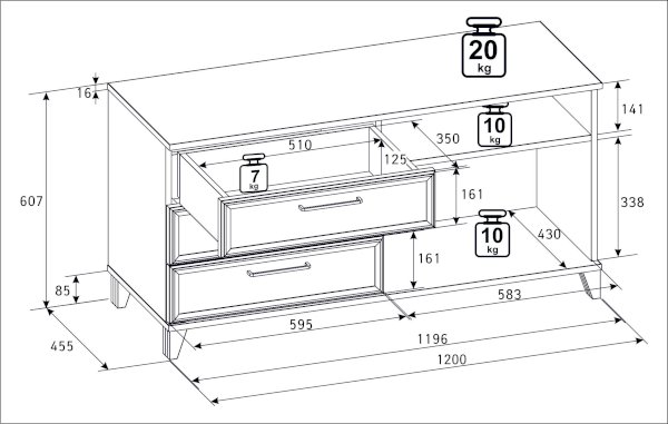 Предусмотрено хранение дисков / техники (приставка для телевизора)