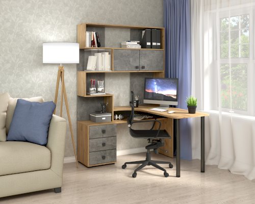 С таким столом вы приобретете удобное рабочее место, практически миниофис со всем необходимым.
