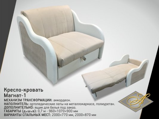 Дополнительная информация: Элементы сидения и спальная часть на металлокаркасе-гнутоклееные латы (березовые),наполнитель ППУ. Опоры- пластик