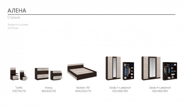 Модульная спальня Алена Венге/Дуб молочный (Империал)