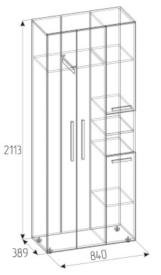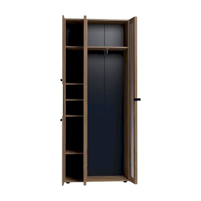 Nature 87 Шкаф для одежды и белья создаст все необходимые условия для хранения в прихожей верхней одежды и аксессуаров. В этом шкафу есть все необходимое для размещения верхней одежды: выдвижная штанга, верхняя полка, ряд регулируемых полок. Большая секция оснащена выдвижной штангой для развешивания пальто и курток на плечиках. Выдвижная штанга выдерживает вес до 10 кг. По желанию к модулю можно докупить светодиодную подсветку Nature 94, которая крепится под полку открытой ниши.