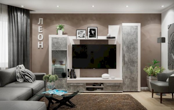 Если вы считаете, что хранить в гостиной посуду уже не модно, шкаф со стеклянной дверцей и стеклянными полками станет отличной витриной для дорогих и любимых фотографий и памятных вещиц. Стеклополки в обработке еврокромкой выдерживают до 10 кг каждая. Их можно декоративно подсветить с помощью светодиодной подсветки (в комплекте не поставляется, приобретается отдельно). Фасад перенавешивается на левую и правую сторону. Серебристая стильная ручка из массива дерева и серое тонирование стекло фасада вносят смелые дизайнерские штрихи в восприятии актуального декора "под бетон".