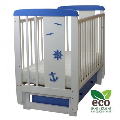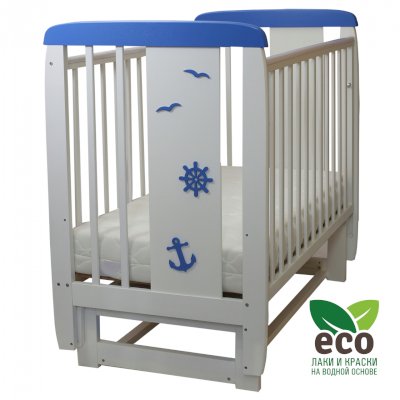 Кроватка "Соня 04" имеет механизм качания поперечный маятник. Механизм качания фиксируется. Возможен вариант с ящиком.