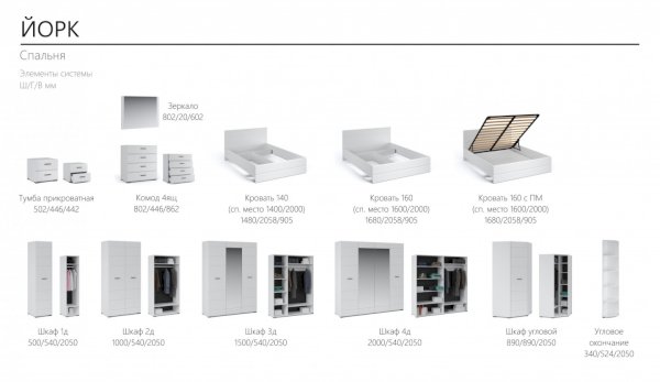 Модульная спальня Йорк Белый жемчуг/Белый глянец (Империал)