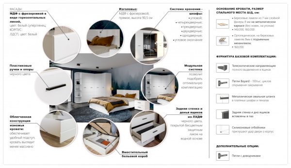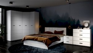 Спальня Йорк отличается стильным европейским дизайном. Глянцевые белые фасады High Gloss из МДФ отражают световые потоки, спальня выглядит динамично, воздушно и легко, что актуально для небольших помещений. Строгая горизонтальная фрезеровка украшает фасады, а контрастные черного цвета ручки и задняя стенка делают спальню особенно выразительной. Спальня универсальна, сочетается с любой мебелью и отделкой. Состоит из отдельных модулей, благодаря чему можно легко подобрать мебель для комнаты любого размера. Выполнена из экологически безопасных и надежных материалов.