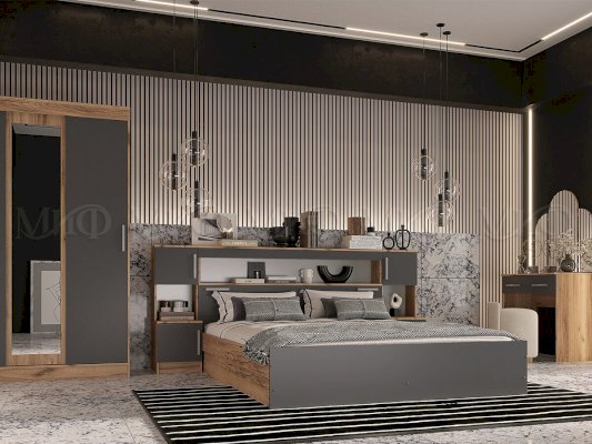 Кровать 1.6 с надстройкой с тумбами Бася (Миф)