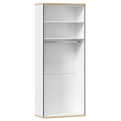 • За глухими распашными дверями 2 полки ЛДСП и штанга. Расстояние между полками 308 мм