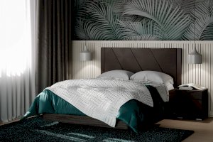 Все ручки в мебели — скрытые. Элементы изголовья кровати обтянуты мягким кожзамом, а оригинальное основание с эффектом «парения» преображает интерьер. В выдвижных ящиках используется система скрытых направляющих Quadro stop control, что позволяет легко и почти бесшумно использовать ящики. Большие зеркала шкафа визуально расширяют пространство комнаты и сделают утренние и вечерние ритуалы еще приятнее.