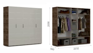 Современный распашной шкаф Джулия яркий представитель европейского минимализма. Это шкаф-конструктор, который позволяет выбрать подходящий вам размер, его наполнение и дизайн. На базе корпуса можно создать множество комбинаций: с зеркалами, с глухими глянцевыми фасадами, с порталом из ЛДСП 22мм или без него. Дополнительная опция – светодиодная подсветка монтируется в верхней части портала над каждой дверью. Шкаф выполнен из экологически безопасных надежных материалов. Декором белым глянцевым фасадам High Gloss служит фрезерованный рисунок «Волна» - подчеркивает зеркальный блеск, делает интерьер спальни особенным и неповторимым. Торцевые ручки из хромированного металла - яркий акцент фасадов. Наполнение шкафа включает в себя вместительные полки и отделения со штангой, что позволяет создать систему для хранения вещей различного назначения. Идеально компонуются со всеми модулями системы Джулия.