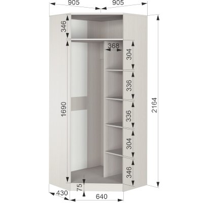 Ширина х Глубина (вдоль стен): 905 х 905 мм