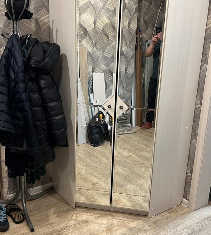 шкаф пошел по цвету, в тон дверей, светло серый,