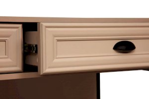 Туалетный стол –  неотъемлемая часть спальни или женской комнаты. Каждая девочка, девушка или дама хочет иметь собственное пространство, свой уголок красоты, для того чтобы привести себя в порядок, нанести макияж, а затем покрасоваться, удобно и компактно расставить свою косметику и парфюмерию, аккуратно сложить украшения и аксессуары. Это красивый и практичный атрибут мебели. Он может послужить и как место для комфортного чтения вашей любимой книги. Корпус стола выполнен из ЛДСП и металлического профиля. Металлическая ручка-ракушка с матовой поверхностью проста в установке, надежна и удобна в использовании, и к тому же, имеет прекрасный внешний вид. Фасады вкладные с рамочным профилем собственного производства.