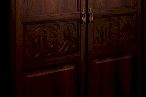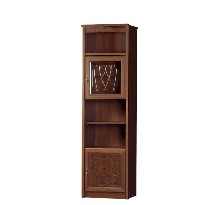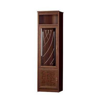 Корпус: ДСП, декоры: «дуб оксфорд» , патина Фасады: МДФ, зеркало с фацетом, прозрачное стекло с фацетом и гравировкой; декоративные вставки с фигурной фрезеровкой: МДФ в пленке ПВХ с эффектом патины