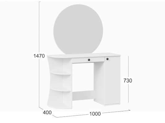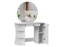 Помимо внешней привлекательности стол имеет большое круглое зеркало, вместительную столешницу под которой располагается как открытая ниша для хранения, так и с дверцей, где можно разместить все необходимые аксессуары и косметику. Такое количество мест для хранения позволит Вам сократить время на создание своего неповторимого образа.