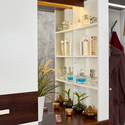 Многофункциональный шкаф Норвуд 70 - находка для маленькой прихожей. В небольшом по габаритам модуле (шириной 1120 мм и глубиной 400 мм) сочетается всё необходимое для обеспечения функциональности прихожей: крючки, стационарная штанга, открытые полки, выдвижные ящики, отделение за откидным фасадом, открытая ниша, зеркало с подсветкой. Встроенная светодиодная подсветка включается при помощи аккуратного кнопочного выключателя. Откидной фасад дополнительно фиксируется при закрывании магнитной защелкой. Горизонтальные детали толщиной 22 мм и фасад верхнего ящика из теплого темного ЛДСП в декоре Орех Шоколадный играют на контрасте с белым декором модуля. В комплектацию входит мягкое сидение, которое позволяет обуваться с комфортом. Регулируемые опоры помогают компенсировать неровности пола в прихожей. Собрать Шкаф МЦН можно как на правую, так и на левую сторону.