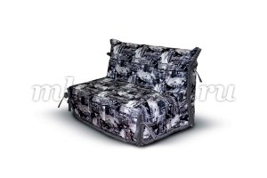 Недорогой малогабаритный диван. Чехол в светлых оттенках, с завязками контрастного цвета. Его можно использовать в качестве покрывала для кровати, в которую миниатюрный диван превращается в разложенном виде. По мере загрязнения чехол можно стирать – он выполнен из тканей, устойчивых к механическим воздействиям и выцветанию, и долгие годы не потеряет свежести внешнего вида.