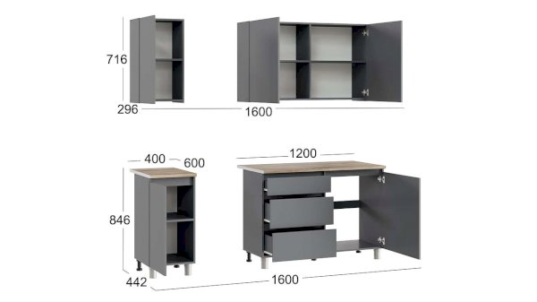 Материал фасада: ЛДСП 16 мм, кромка ПВХ 0,4 мм
