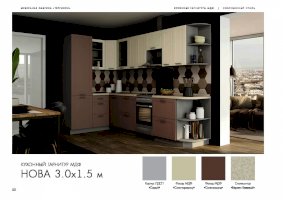 Кухня Нова изговаливается также в цветах серый/силк топаз; серый/силк гранат; серый/силк алмонд; серый/крем-брюле + горький шоколад глянец. Модули в этих цветовых решениях вы сможете найти в нашем интернет-магазине.