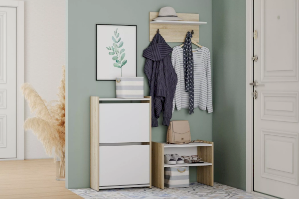 С вешалкой Симпл вся нужная верхняя одежда будет сразу в одном в месте. Модуль представляет из себя настенную панель с двумя крючками. В верхней части вешалки находится полка для головных уборов.