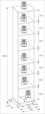 Максимальная нагрузка на полку: 20 кг