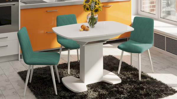 Модель обладает высокой функциональностью – за счет внутренней вставки «бабочка», конструкция позволяет из компактных размеров сделать вместительный обеденный стол. Благодаря использованию направляющих синхронного раздвижения, регулировка размеров столешницы осуществляется плавно и без усилий.
