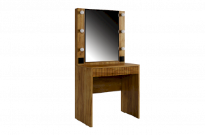 Трюмо Адам — это идеальное сочетание стиля и практичности. С широким фацетированным зеркалом, в котором встроена подсветка из 6 лампочек, оно создает атмосферу профессиональных студий визажистов прямо у вас дома. Комфорт и функциональность обеспечиваются дополнительными элементами, такими как выключатель, розетка для фена и выдвижной ящик для хранения украшений и косметики. Элегантные закругленные углы завершают дизайн, делая его идеальным дополнением к вашей спальне.