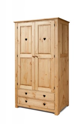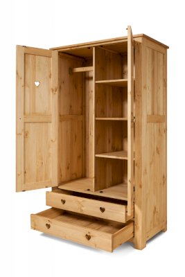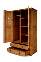 Наполнение: За левой дверкой съёмная штанга, за правой дверкой 3 съёмные полки. 2 выдвижных ящика на деревянных полозьях.